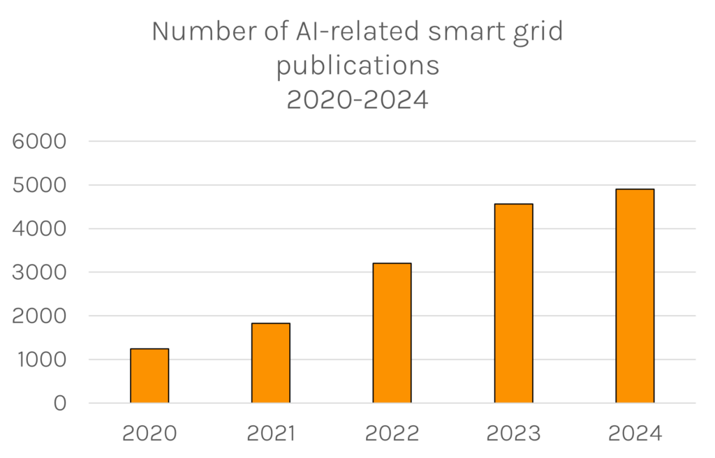 Figure 4: showing the increased implementation of AI in smart grid patent publications over the past 5 years